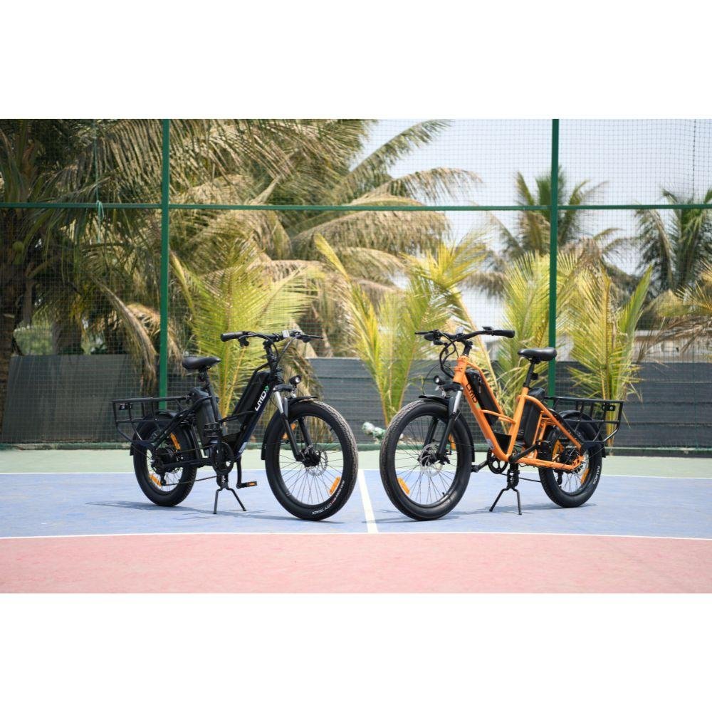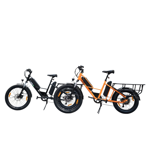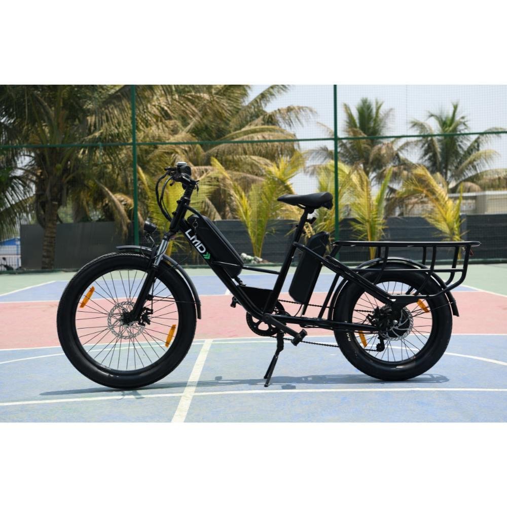 The LMD isn’t just an e-cycle—it’s a powerhouse of durability and performance, designed to handle heavy loads and long rides with ease. Its high-tensile longtail high strength steel frame supports up to 150 kg, while dual 48V 10.2Ah removable batteries provide an impressive range of up to 100 km on the pedal assist. Powered by a 250W rear hub motor and equipped with 24"x3.0" front and 20"x3.0" rear tyres for superior stability, the LMD delivers smooth, safe rides across any terrain. With features like 80mm front suspension, 180mm mechanical disc brakes, and a multifunctional display, it’s built for practicality, reliability, and everyday adventures.
